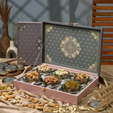 Luxurious Wooden Gift box with 2 laser cut design salsa jars & 20 cavity (13.5x10x3.5 Inches)