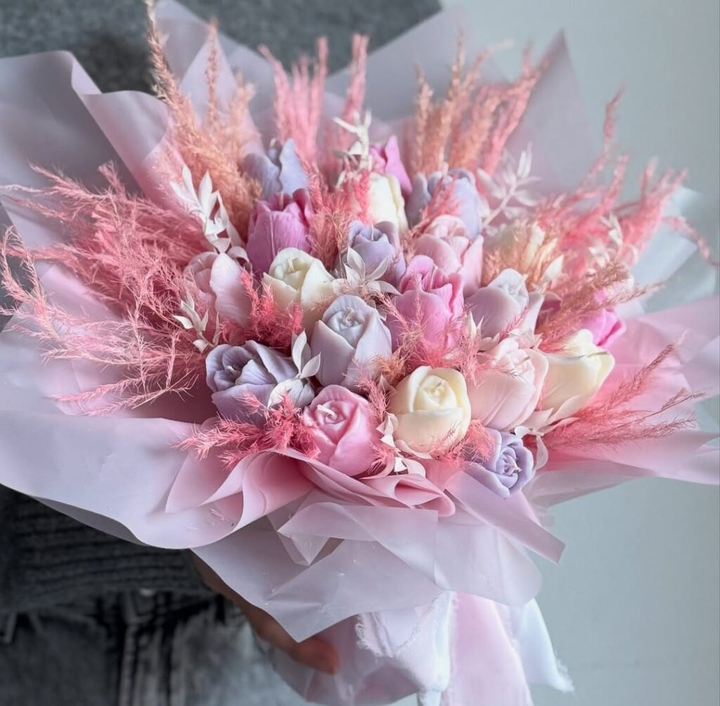 Light Blush Floral Hamper Box With 6 Square Jars (14x10x4 Inches)